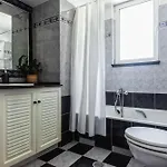 Badeværelsesfaciliteter inkluderer et badekar og en bruser.